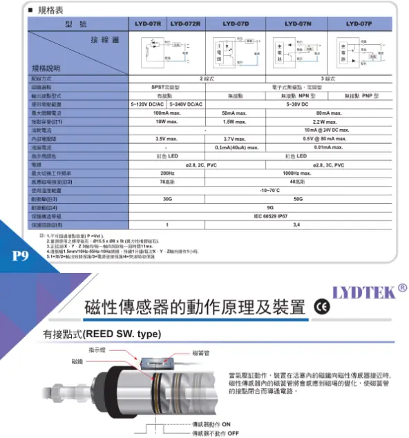 LYDTEK感磁傳感器LYD-09系列有:LYD-09R,LYD-09RD,LYD-09N,LYD-09P;